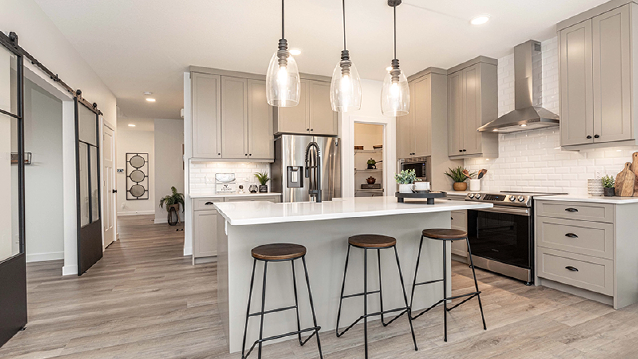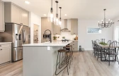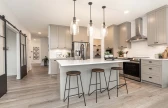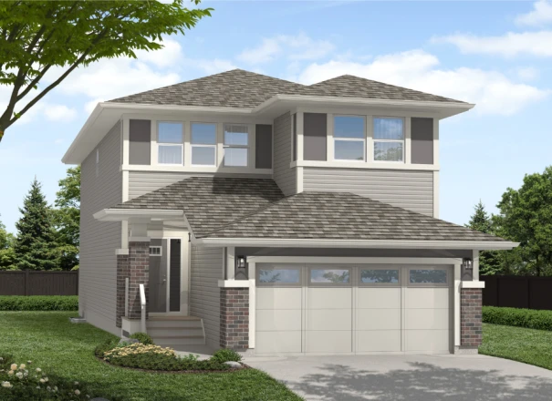 The Escalade II is a 2,375 sq. ft. front attached garage, two-storey home featuring 4 bedrooms, 2.5 bathrooms, and an upper floor bonus room. The modern kitchen is open to the rest of the home and features a walk-thru pantry and centre island with an extended eating bar. The Great Room and Nook area are both open concept and allow design freedom for dining and entertaining purposes. The second floor has 4 bedrooms, a main bathroom, a versatile bonus room, and a full laundry room for added convenience. The Primary Bedroom has a spacious walk-in closet and an accompanying ensuite featuring double sinks, soaker tub and shower with glass partition. The Escalade II has an optional great room design with an electric fireplace available, as well as the option to add a fifth bedroom to the main floor. Basement development is also available and can add an additional bedroom, bathroom, family room, and wet bar.