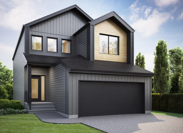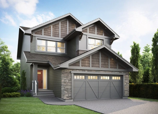 The Escalade II is a 2,375 sq. ft. front attached garage, two-storey home featuring 4 bedrooms, 2.5 bathrooms, and an upper floor bonus room. The modern kitchen is open to the rest of the home and features a walk-thru pantry and centre island with an extended eating bar. The Great Room and Nook area are both open concept and allow design freedom for dining and entertaining purposes. The second floor has 4 bedrooms, a main bathroom, a versatile bonus room, and a full laundry room for added convenience. The Primary Bedroom has a spacious walk-in closet and an accompanying ensuite featuring double sinks, soaker tub and shower with glass partition. The Escalade II has an optional great room design with an electric fireplace available, as well as the option to add a fifth bedroom to the main floor. Basement development is also available and can add an additional bedroom, bathroom, family room, and wet bar.